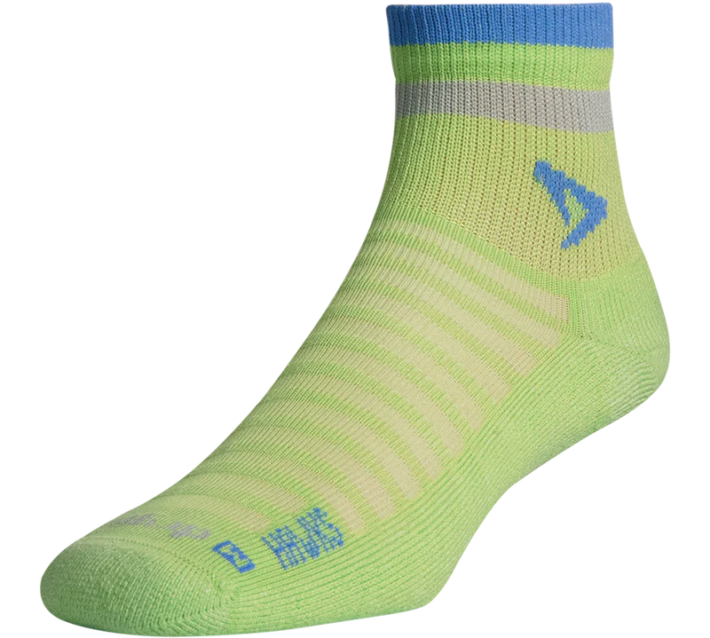 Our Hot Weather Running Socks combine Drymax fibers with PTFE (Polytetrafluoroethylene) fibers to limit heat caused by excess friction. This system has PTFE fibers in the heel, forefoot, and toe areas of the socks. Additionally, to help keep feet cool, built-in open mesh stripe vents release heat and sweat vapors. The 1/4 Crew leg height helps protect your ankles on both the road and trail.