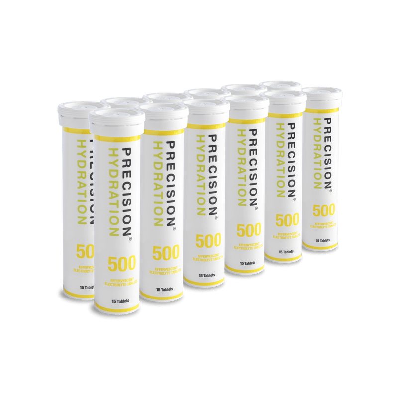 Precision Fuel & Hydration Electrolyte PH 500 is a moderate-strength electrolyte drink tablet designed to keep you hydrated when you’re sweating. Simply dissolve one tablet in 16oz of water to replace key electrolytes lost during exercise, without the extra sugar or calories.