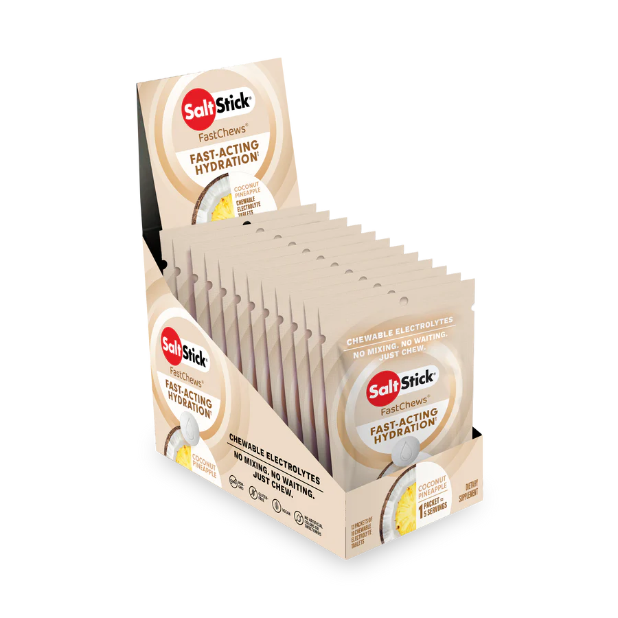 SaltStick FastChews Coconut Pineapple are the ultimate solution for rapid electrolyte replenishment, designed for athletes, runners, cyclists, and fitness enthusiasts. With a refreshing tropical flavor, SaltStick FastChews Coconut Pineapple make it easy to stay hydrated and energized during intense workouts, races, or everyday activity.