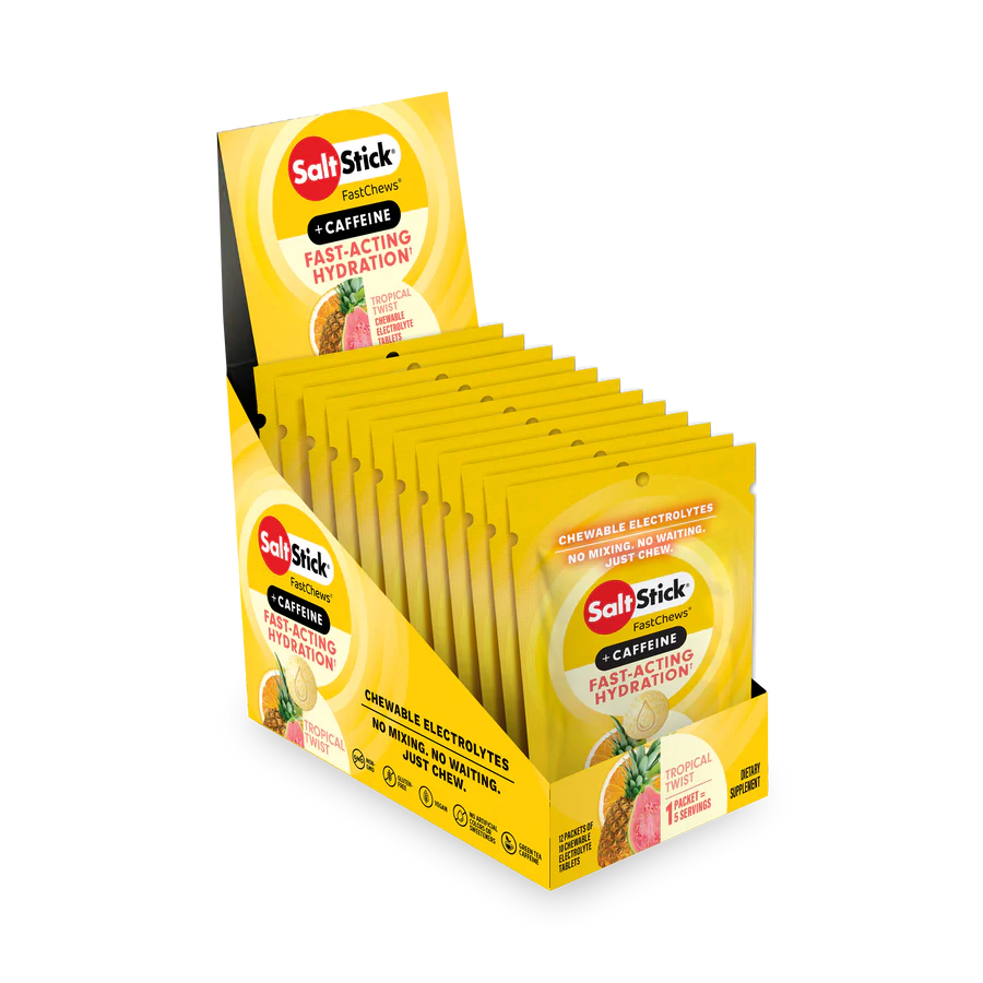 Designed for athletes, runners, cyclists, and adventurers, SaltStick Fast Chews Tropical Twist (Caffeine) help replace the electrolytes lost in sweat, prevent muscle cramps, and provide an extra kick of energy when you need it most. Whether it’s during training, competition, or long endurance sessions, SaltStick Fast Chews Tropical Twist (Caffeine) keep you hydrated, fuelled, and alert.