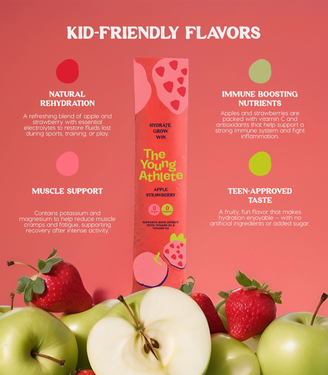 The Young Athlete is a clean-label electrolyte drink mix developed specifically for active adolescents. Unlike conventional sports drinks that are often high in sugar and designed for adults, this formulation provides age-appropriate hydration support with zero added sugar, Keto and no artificial ingredients. Ideal for sports teams, school programs, or wellness-conscious families, it bridges the gap between performance and safety for young consumers.