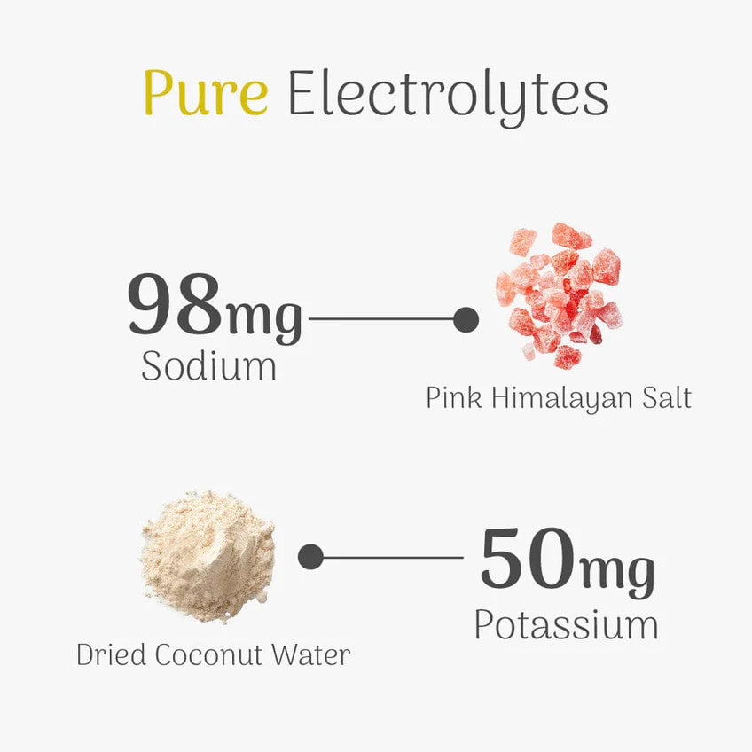 Ingredients: Beet sugar, corn starch, concentrated fruit juice (apple (8%), lemon), water, coconut water powder, dried cinnamon, pink Himalayan salt.