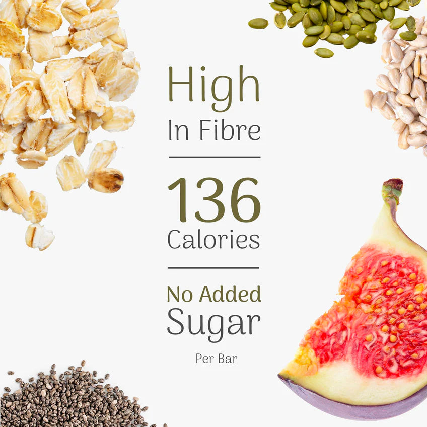 Veloforte Oat Bar Figs & Oats Award-winning, Gut-healthy Oat Bars for daily snacking with zero added sugar & zero additives. Packed full of juicy fruit, chewy oats, crunchy seeds and high-fibre whole foods - all for under 136 calories.